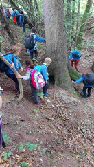 Prvi oktobrski dan smo preživeli v naravi, v »učilnici«, na robu gozda naše kmetije. Tam smo se zbrali z učenci drugega razreda Osnovne šole Miroslava Vilharja Postojna, Podružnične šole Hruševje, učenci posebnega programa (PPVI) ter učenci celodnevne osnovne šole iz Trebč v zamejstvu. Družili smo se na še eni izmenjavi, ki smo jo izpeljali v okviru projekta Erasmus+ »Gozdovi izobražujejo in povezujejo vse in vsakogar«.