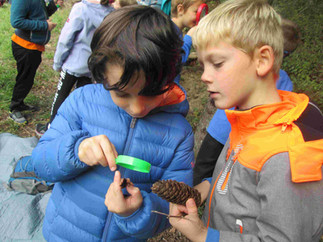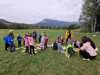 V skupini »zaklad« so dvojice učencev, s prekritimi očmi poskušale ugotoviti, kaj se nahaja v žakeljčkih, obešenih med drevesi. To so potem narisali. Skupina »ugani, katera žival sem«, je iz naravnih materialov oblikovala živali, po opisih na kartončku. Tretja skupina je izdelovala mozaik iz naravnih materialov, ki so jih učenci predhodno nabrali v naravi in razvrstili po barvah v škatlo od jajc. »Zumčki« so poskušali uganiti, kaj prikazuje povečana slika na kartončku in potem to poiskati v naravi. Z večnamensko leseno igro pa so se učenci pete skupine igrali spomin in razvrščali živali po skupinah.